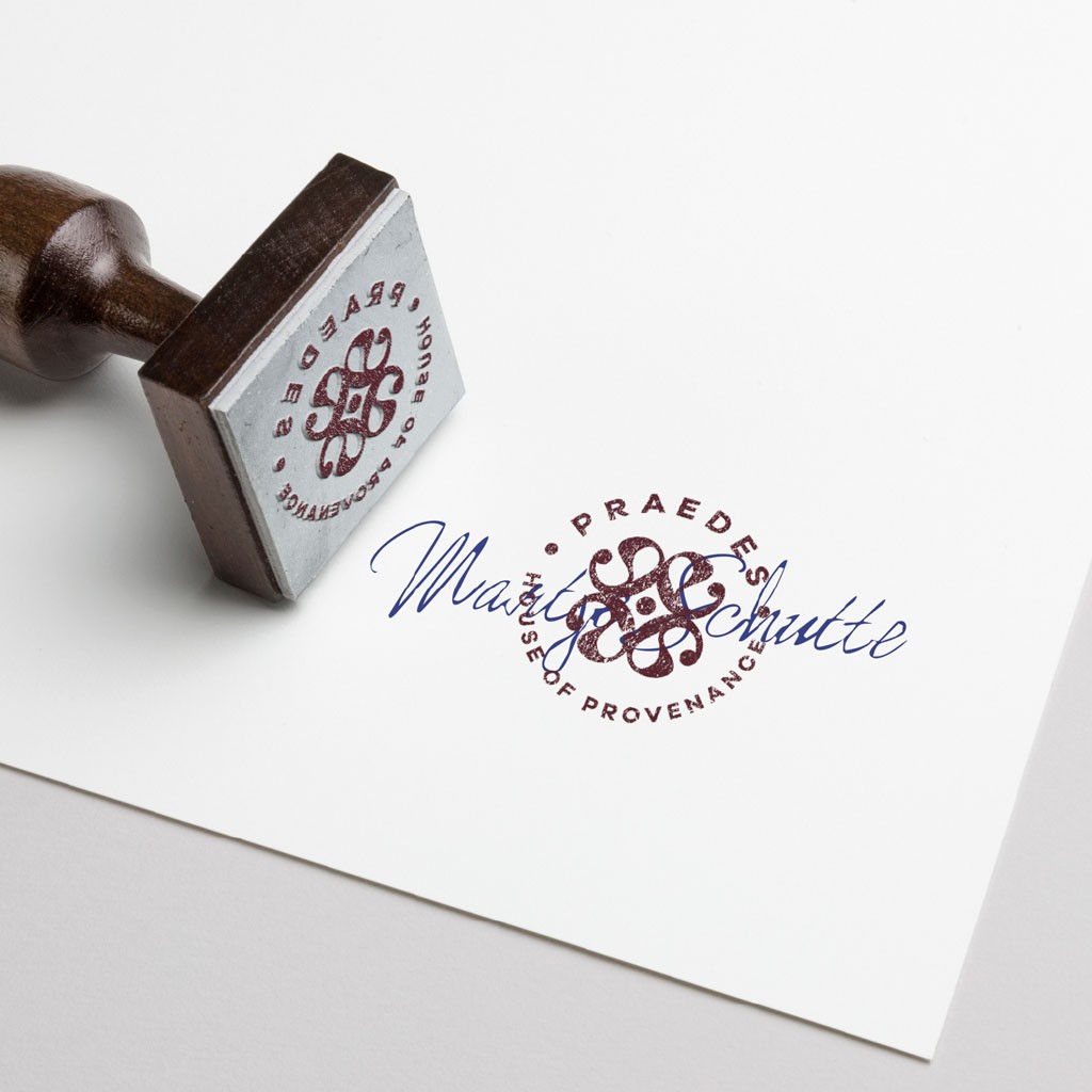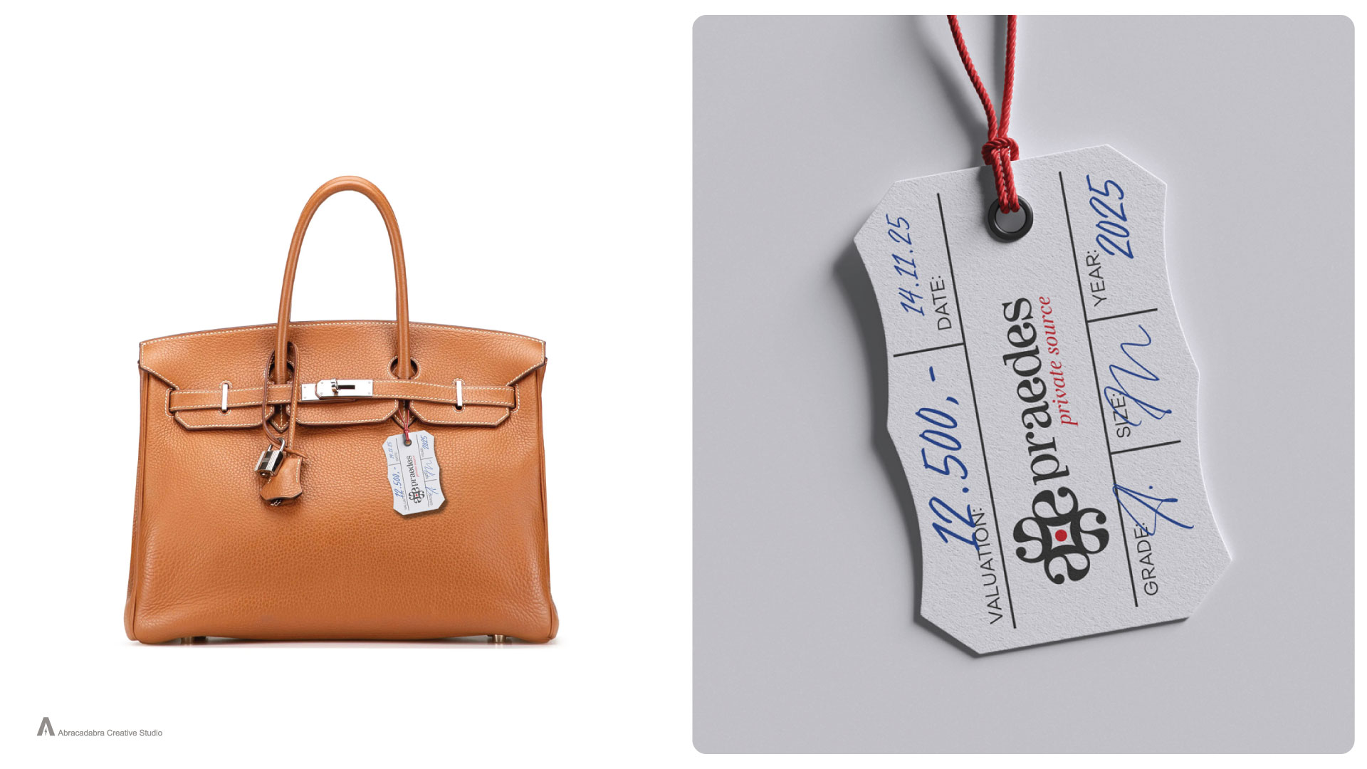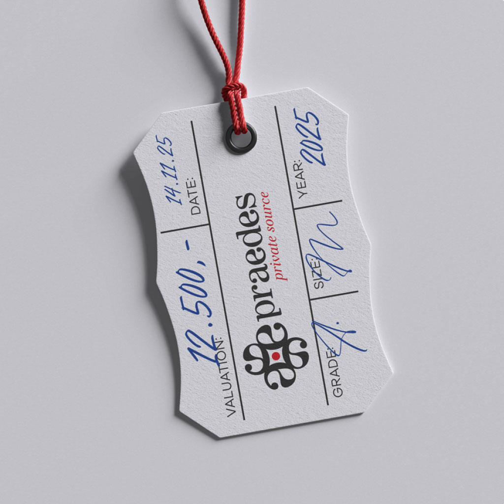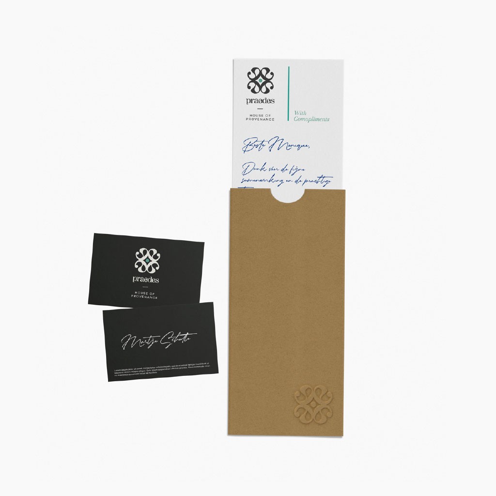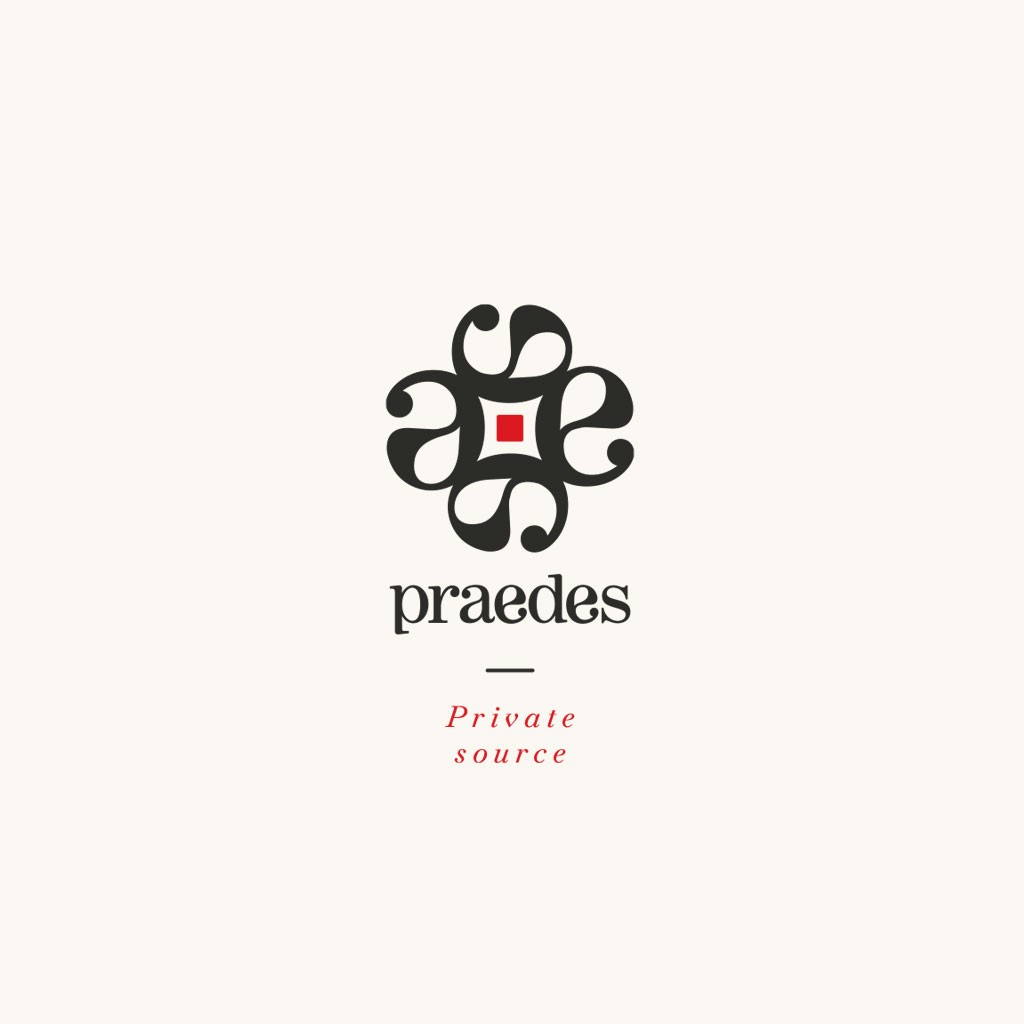 At the centre of the identity is the new brand mark — a geometric composition derived from the two E’s in the name Praedes, mirrored and combined into a structured symbol.
